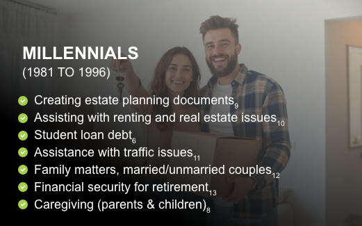 We’ve designed our services to make legal help easier to access, more relatable, and more trusted—across generations, regions, and life situations. Here’s how we do it: